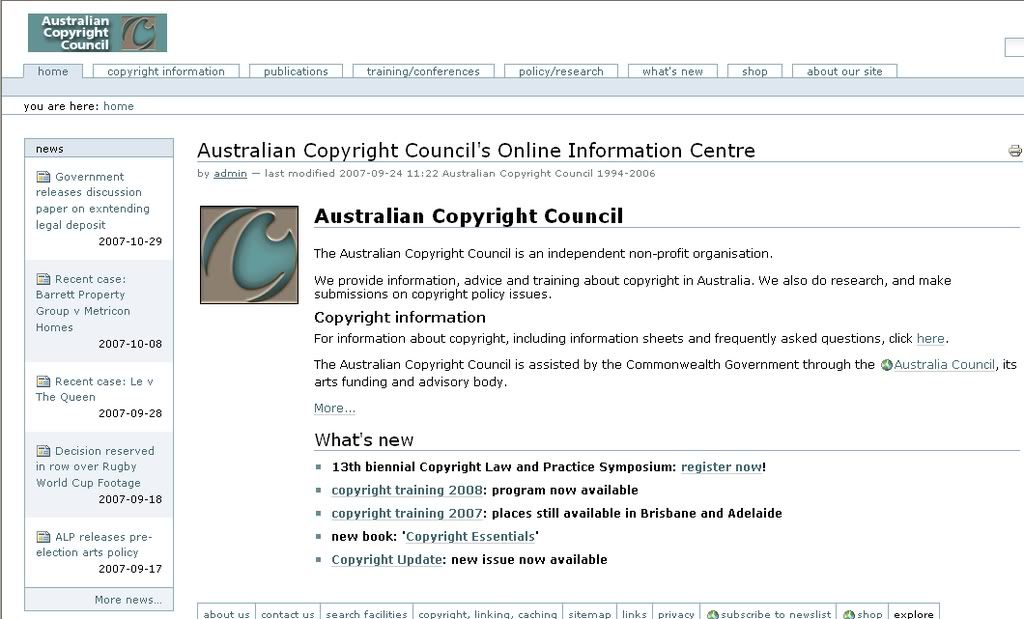 The image below is the home page of www.copyright.org.au