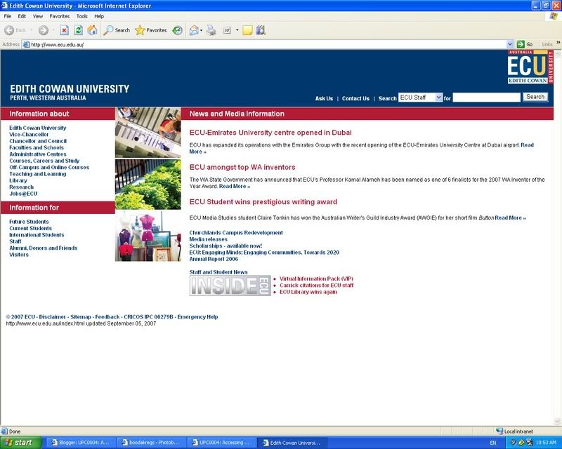 Week ones workshop is very useful as you are taught how to use the ECU website efficiently. You are taught how to use blackboard, how to save work in you ECU portfolio, how to get into SIMO, where to go to print out lecture and tutorial notes and also the readings, and other areas which you, as a university student will need through out your years of study. The first tutorial activity is creating a user account at Blogger.com. Blogger.com is a site where you create blogs for other users to view and comment. A blog is basically an online diary where you can write anything you wish, this may include news on a particular subject such as television, politics or even just about your life and anything you want to share with people. A blog generally includes written text, pictures relating to the subject at hand and hyperlinks. The blogs produced for this course should be about the UPC0004 lectures, tutorials and readings, and the pictures and hyperlinks should be of the work related to the workshop.